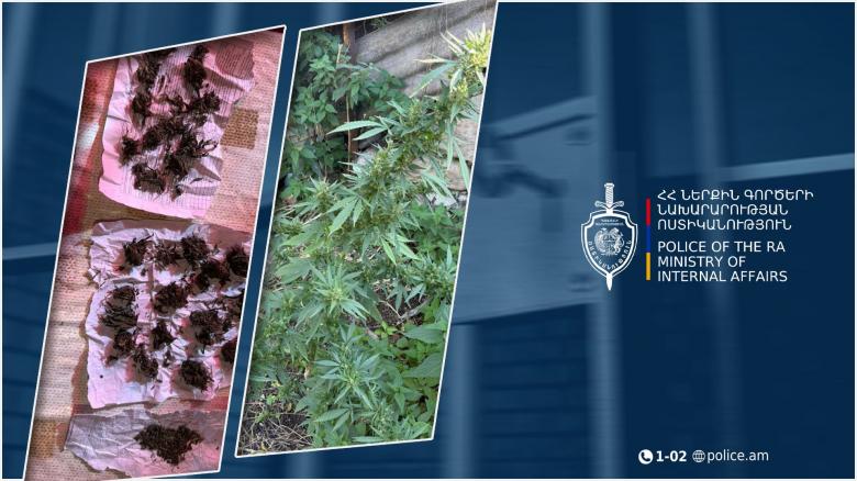Նախաձեռնված քրեական վարույթի շրջանակում կատարված զննությամբ այգեստանցու տանը հայտնաբերվել է շուրջ 27 գրամ մարիխուանա տեսակի թմրամիջոց, իսկ այգում՝ կանեփի թուփ։