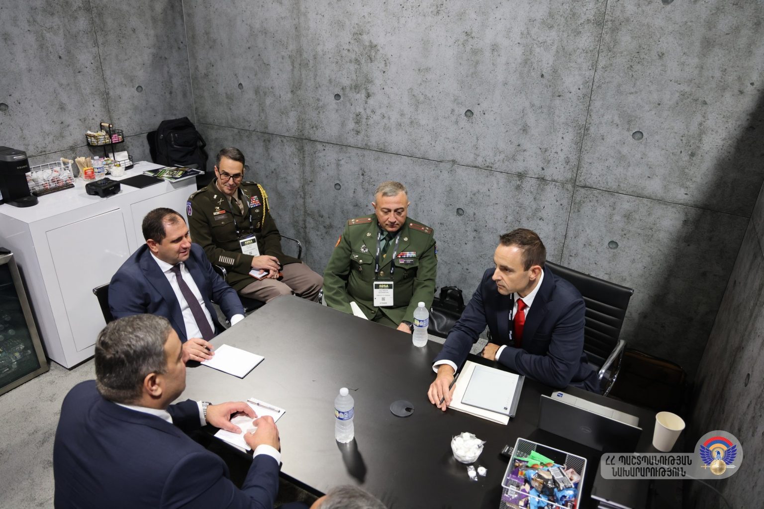 ՀՀ պաշտպանության նախարար Սուրեն Պապիկյանը Վաշինգտոնում հանդիպել է զինվորական համազգեստի ձևավորման ու մշակման գործում մասնագիտացած ամերիկյան «Միլլիկեն» ընկերության ղեկավարության հետ: Այս մասին հայտնում են ՀՀ ՊՆ-ից և նշում, որ հանդիպման ընթացքում քննարկվել են ՀՀ զինված ուժերի նոր համազգեստի մշակման գործընթացի ներկա փուլին առնչվող հարցեր: