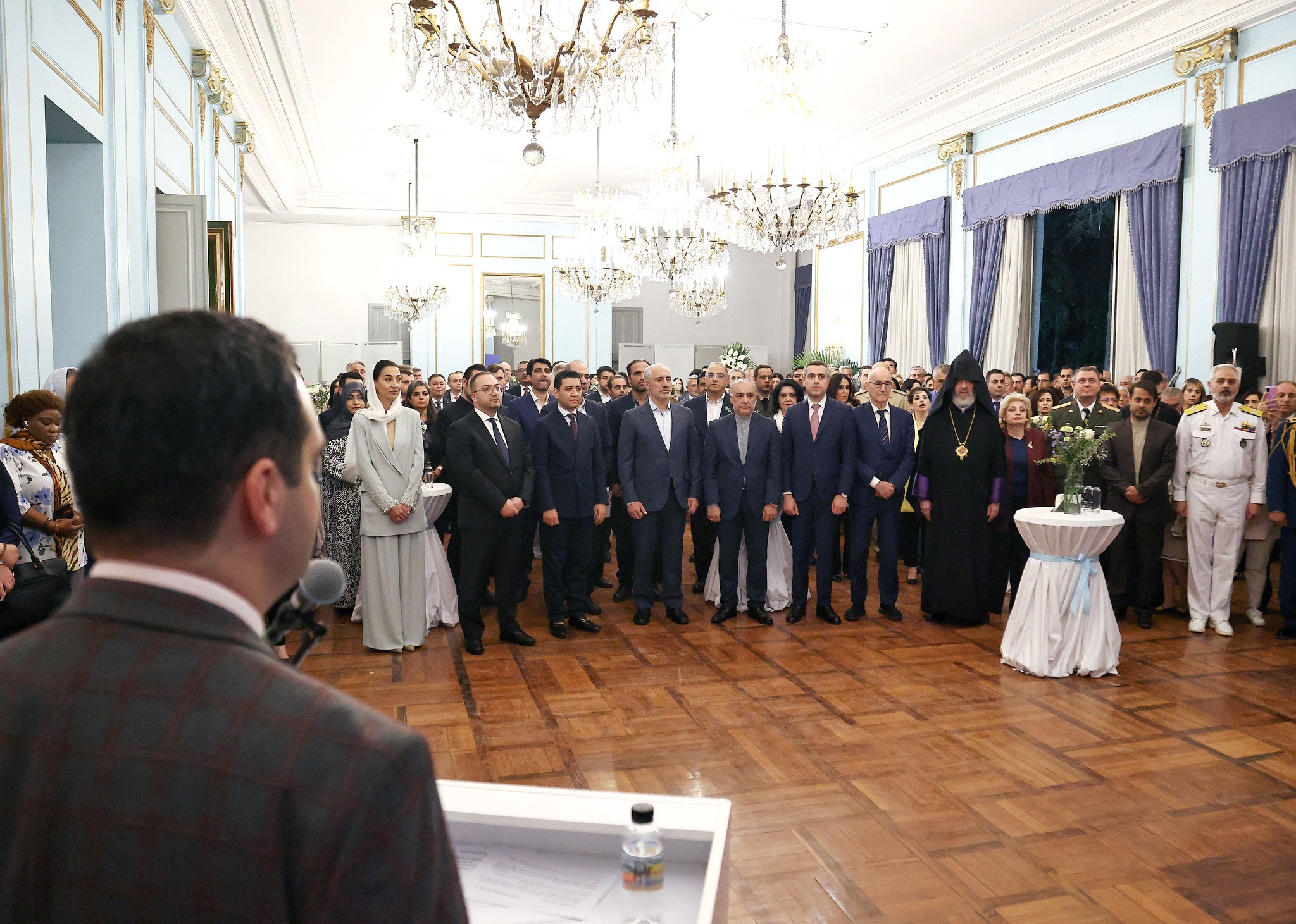 ՀՀ ԱԳՆ գլխավոր քարտուղար Դավիթ Կարապետյանն իր խոսքում անդրադարձել է անկախության նշանակությանը, ընդգծել այդ ուղղությամբ Հայաստանի Հանրապետության որդեգրած հանձնառությունը: Անդրադառնալով Իրանի հետ երկկողմ հարաբերություններին՝ Դ. Կարապետյանն նշել է, որ երկու պետությունների միջև դիվանագիտական հարաբերությունների հաստատումից ի վեր Հայաստան-Իրան հարաբերություններն ապրում են վերընթաց զարգացում՝ ձգտելով ռազմավարական բնույթի: ՀՀ ԱԳՆ գլխավոր քարտուղարը ներկայացրել է նաև օգոստոսի 8-ին Վաշինգտոնում Հայաստանի, Ադրբեջանի և ԱՄՆ ղեկավարների կողմից ստորագրված հռչակագիրը՝ ընդգծելով դրա կարևորությունը Հարավային Կովկասի տարածաշրջանում խաղաղության հաստատման գործում: