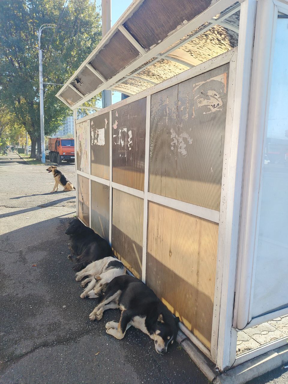 Շները «միահամուռ ուժերով» զով տեղ են գտել` պաշտպանվելու աշնան արեւի վերջին շողերից։