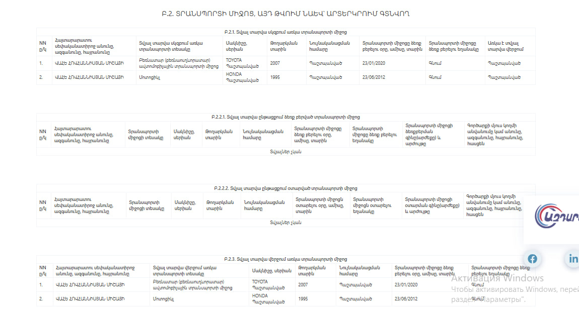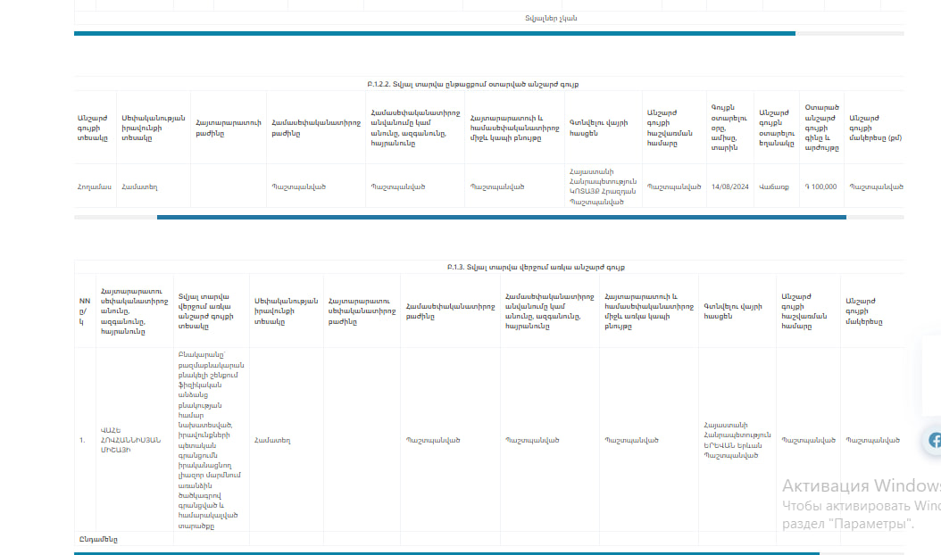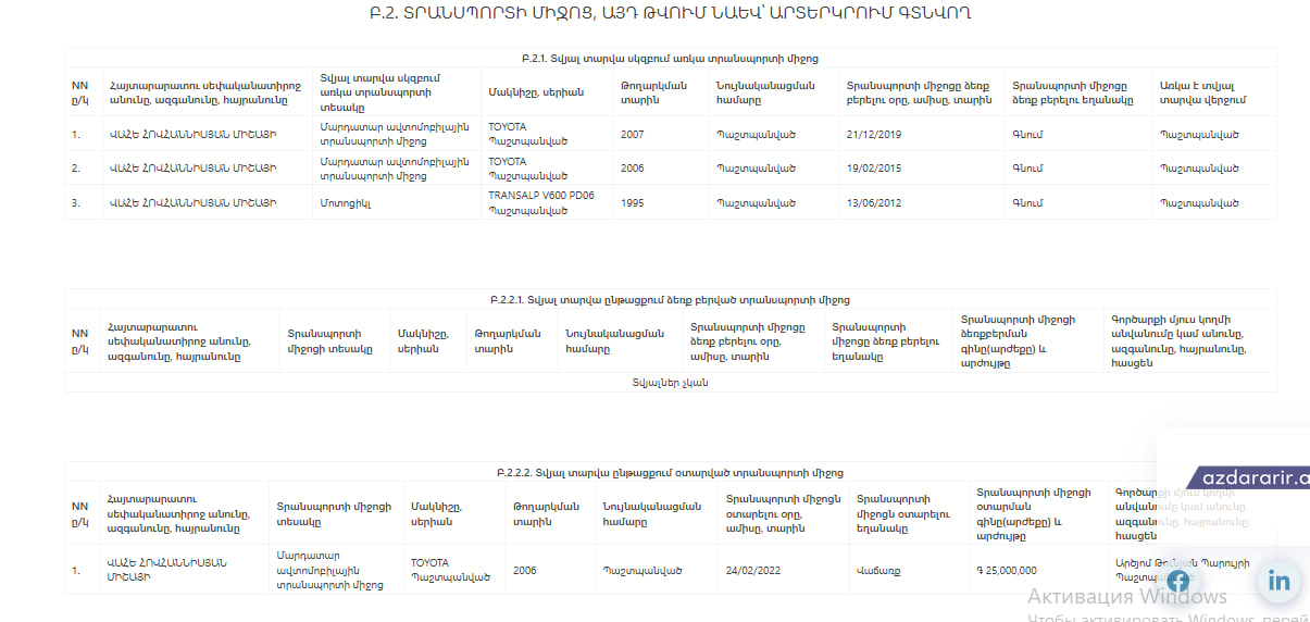 Հովհաննիսյանը վաճառել է հողամաս, որ տարեսկզբին առկա գույքերի ցանկում անգամ չկա։