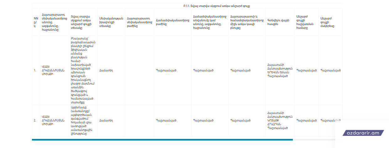 Պարզ է դարձել, որ հայտարարագրում առերևույթ առկա են սխալ կամ ոչ ամբողջական ներկայացված տվյալներ, մասնավորապես «Անշարժ գույք» բաժնում հայտարարագրված չեն տվյալներ Երևանում գտնվող անշարժ գույքի վերաբերյալ, իսկ «Էլեկտրոնային հաշիվներ և կրիպտոարժույթ» բաժնում հայտարարագրված չեն տվյալ տարվա սկզբի դրությամբ առկա կրիպտոարժույթի վերաբերյալ։
