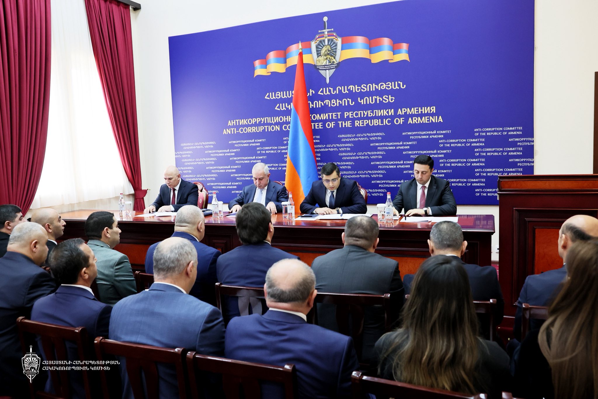 Նիստի ընթացքում, ի թիվս օրակարգային այլ հարցերի, քննարկվել է Հակակոռուպցիոն կոմիտեի օպերատիվ-հետախուզական ստորաբաժանումների ծառայողների աշխատանքի գնահատման կարգի նախագիծը։
