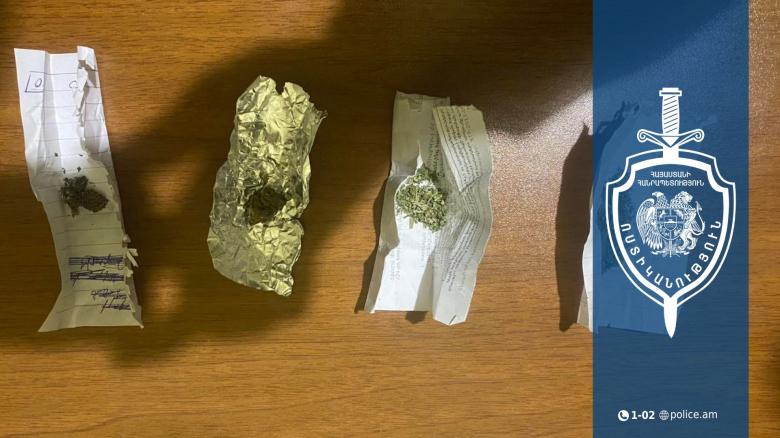 24-ամյա երիտասարդի խուզարկությամբ հայտնաբերվել է մարիխուանայի նմանվող զանգվածով թղթյա չորս փաթեթ։