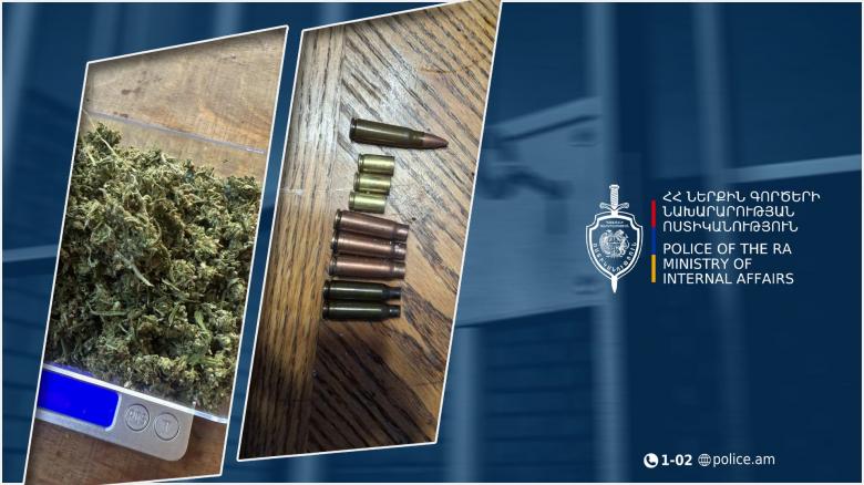 Արագածոտնի մարզային քննչական վարչությունում նախաձեռնված քրեական վարույթի շրջանակում նոյեմբերի 4-ին կատարված խուզարկությամբ տանը և օժանդակ շինություններում հայտնաբերվեցին մարիխուանայի նմանվող` ընդհանուր ավելի քան 120 գրամի զանգվածներով լցված տարաներ ու փաթեթ, նաև` կանեփի սերմ, կրակված ութ պարկուճ և մեկ փամփուշտ։