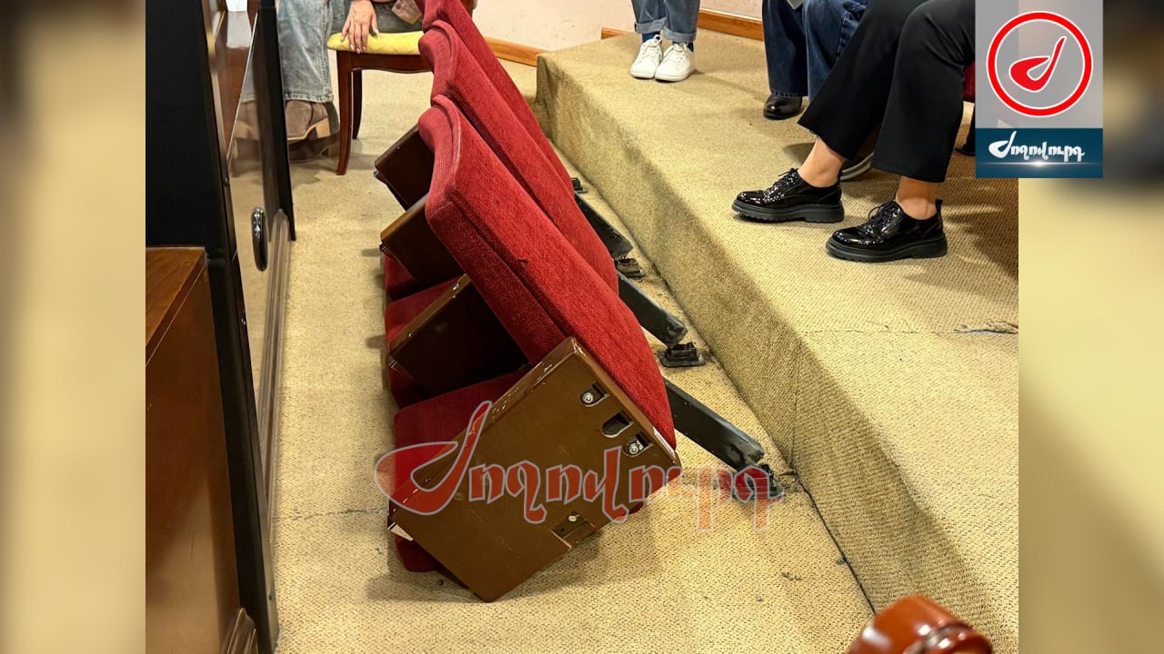 ArmLur.am-ի տեսախցիկը արձանագրել է, որ Եվրանեստից հետո ԱԺ լրագրողների օթյակի աթոռները, որոնք հանվել էին, վերատեղադրելուց հետո կոտրվել են։