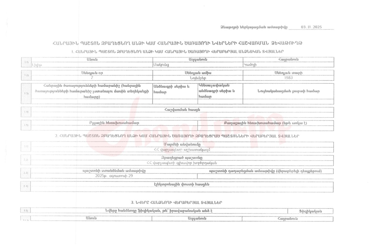«Տեղեկացնում ենք, որ «Ժողովուրդ» օրաթերթում տպագրված լուրն առ այն, որ ՀՀ վարչապետի գլխավոր խորհրդական Լիլիթ Մակունցն ստացել է նվեր (հանրագիտարան) 1 մլն 14 հազար դրամ արժողությամբ, չի համապատասխանում իրականությանը: