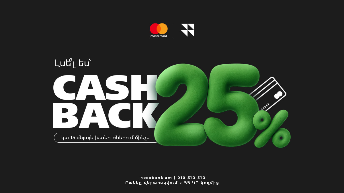 2025 թվականի նոյեմբերի 21-ից մինչև դեկտեմբերի 6-ը բանկի Mastercard քարտապանները հնարավորություն կունենան ստանալու 10-25% քեշբեք՝ գնումներ կատարելով միջազգային ամենապահանջված օնլայն հարթակներում։