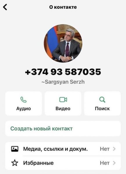 «WhatsApp հավելվածում ստեղծվել է ՀՀ երրորդ նախագահ Սերժ Սարգսյանի անունով կեղծ օգտահաշիվ (+374 93 587035), որից տարբեր մարդկանց ուղարկվում են հաղորդագրություններ։ Այս մասին հայտարարություն է տարածել նախագահի գրասենյակը։