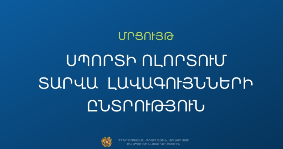 ՀՀ կրթության, գիտության, մշակույթի և սպորտի նախարարությունը մեկնարկում է 2025 թվականի «Սպորտի ոլորտում տարվա լավագույնների ընտրություն» մրցույթը: Այն նպատակ ունի խրախուսել և մեծարել ընթացիկ տարում նվաճումներ կամ նշանակալի հաջողություններ գրանցած, ինչպես նաև իրենց մրցելույթներով ՀՀ ճանաչելիության և հեղինակության բարձրացմանը, պետական խորհրդանիշների, ազգային արժեքների հանրահռչակմանը նպաստած հայ մարզիկներին և մարզիչներին: