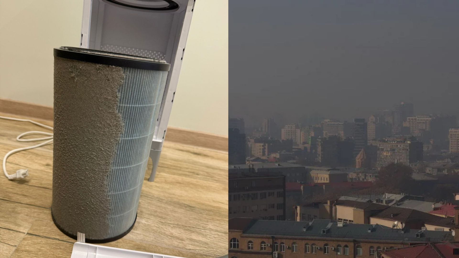 «Նկարում օդ մաքրող սարքի ֆիլտրն է` մեկ ամիս օգտագործելուց հետո, աջ կողմը` արդեն մաքրված վիճակում։