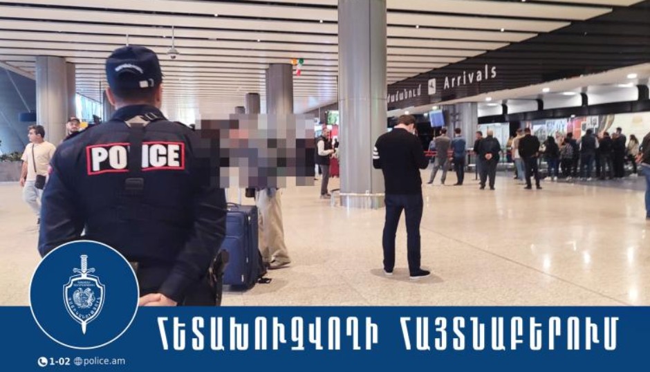 Դեկտեմբերի 9-ին՝ ժամը 2․30-ին Համայնքային ոստիկանության «Զվարթնոց» օդանավակայանի բաժնի ծառայողների ձեռնարկած օպերատիվ-հետախուզական միջոցառումների շնորհիվ, չվերթի հաշվառումից հետո ձերբակալվել է օտարերկրյա քաղաքացի 35-ամյա տղամարդ։