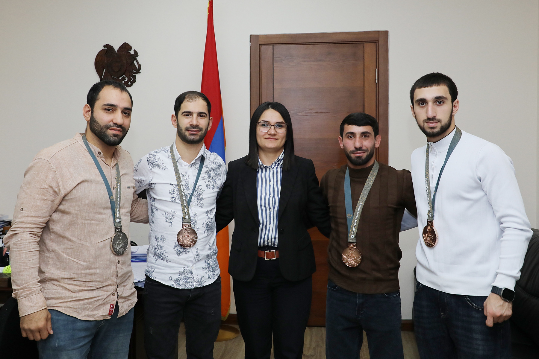 ԿԳՄՍ նախարարի տեղակալ Հասմիկ Ավագյանը շնորհավորել է մարզիկներին գրանցած արդյունքների կապակցությամբ և նշել. «Շատ ուրախ եմ, որ հնարավորություն ունենք ձեզ հետ ոչ միայն քննարկելու ոլորտային ընթացիկ հարցեր, այլև շնորհակալություն հայտնելու նվաճումների համար: Ուզում եմ ընդգծել, որ ձեր աշխատանքը տեսանելի է պետության համար, և դուք առանձնահատուկ դեր ունենք Հայաստանի Հանրապետության սպորտային նվաճումների պատմության մեջ: Ձեր շնորհիվ հեռավոր Ճապոնիայում բարձրացվեց Հայաստանի դրոշը, և մրցող բազմաթիվ երկրներ ճանաչեցին մեր երկիրը»: