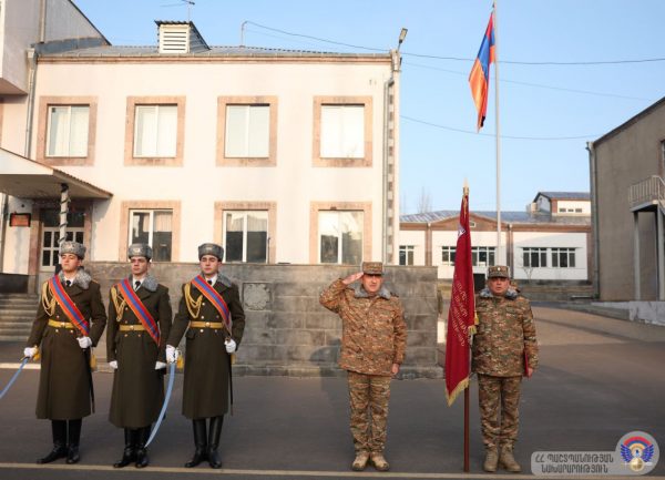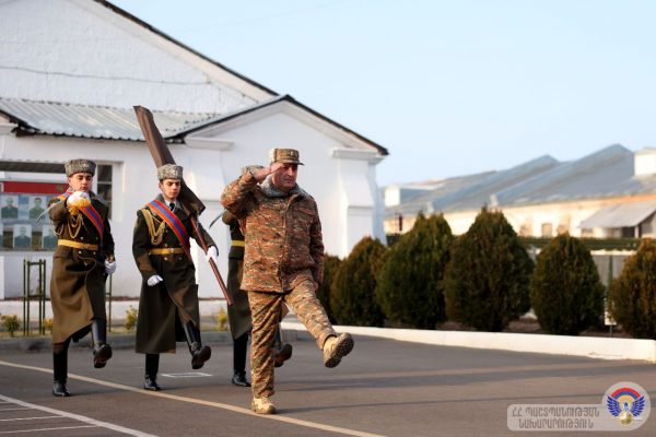 Դրոշը տարածքային պաշտպանության զորքերի հրամանատար, գեներալ-մայոր Սամվել Մինասյանին հանձնել է ՀՀ պաշտպանության նախարարի առաջին տեղակալ, ԶՈՒ ԳՇ պետ, գեներալ-լեյտենանտ Էդվարդ Ասրյանը։