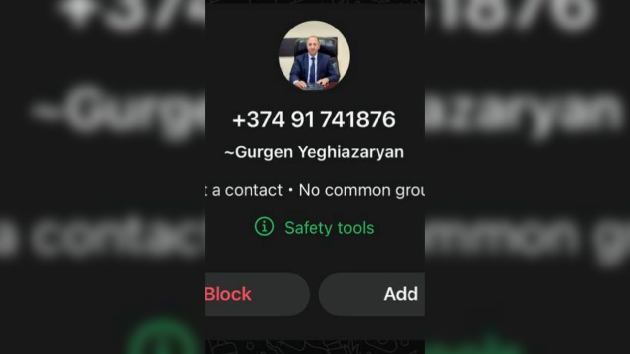 WhatsApp հավելվածում բացվել է ՀՀ քաղաքաշինության կոմիտեի գլխավոր քարտուղար Գուրգեն Եղիազարյանի անունով կեղծ օգտահաշիվ։ Գուրգեն Եղիազարյանի լուսանկարի օգտագործմամբ նրան չպատկանող հեռախոսահամարից տարբեր անձանց ուղարկվում են հաղորդագրություններ։