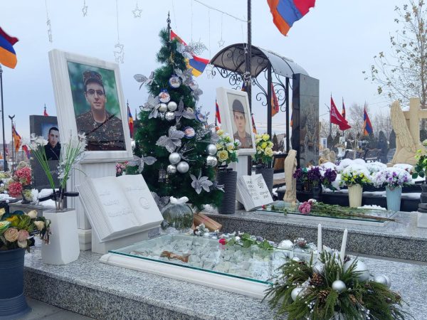 Զոհված տղաների շիրիմները պատված են ամանորյա զարդարանքներով, շատերի շիրիմների մոտ տոնածառեր են զարդարված մեր հերոս տղաների նկարներով։