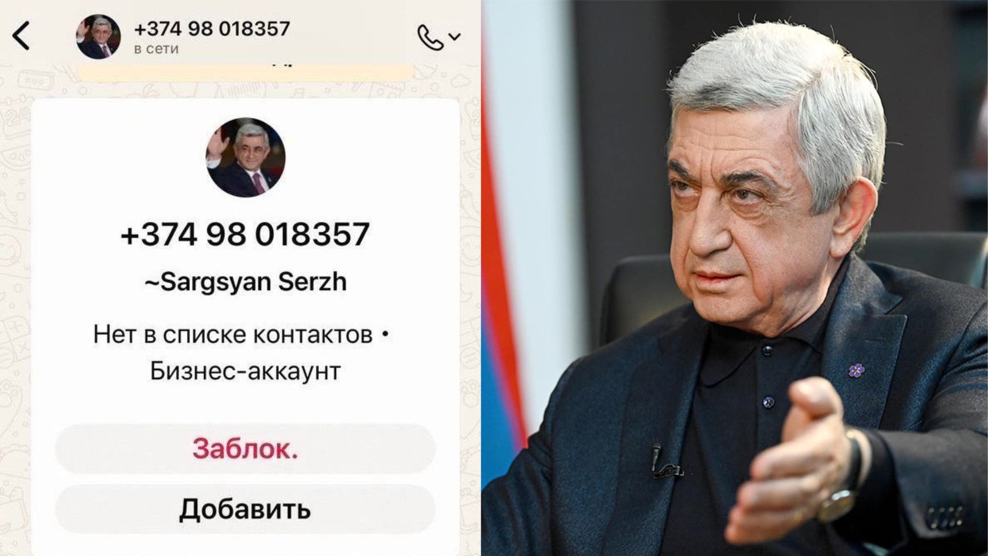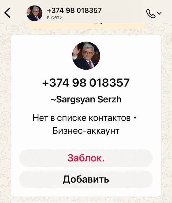 WhatsApp հավելվածում ստեղծվել է ՀՀ երրորդ նախագահ Սերժ Սարգսյանի անունով հերթական կեղծ օգտահաշիվը (+374 98018357), որից տարբեր մարդկանց ուղարկվում են հաղորդագրություններ։