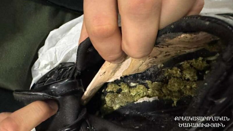 ՀՀ արդարադատության նախարարության «Արմավիր» քրեակատարողական հիմնարկի անվտանգության ապահովման բաժնի ծառայողները խուզարկության են ենթարկել տնային կալանքից հիմնարկ ընդունված կալանավորված անձին: Արդյունքում՝ նրա անձնական իրերի մեջ առկա սպորտային կոշիկների ներբանների միջից հայտնաբերել են թմրամիջոցների նմանվող զանգվածներ, մասնավորապես՝ 14,52 գրամ դեղնականաչավուն, բուսական զանգված և 7,39 գրամ սպիտակ, բյուրեղանման զանգված։