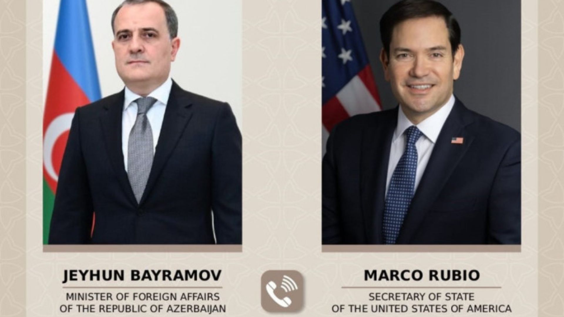 Ադրբեջանի արտաքին գործերի նախարար Ջեյհուն Բայրամովը և ԱՄՆ պետքարտուղար Մարկո Ռուբիոն հեռախոսազրույց են ունեցել։