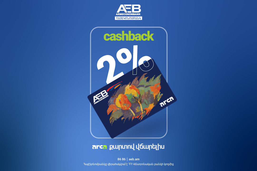 2026 թվականի հունվարի 1-ից Հայէկոնոմբանկի Arca վճարային քարտերով կատարված անկանխիկ գործարքների դիմաց կստանաք 2% հետվճար (քեշբեք)։