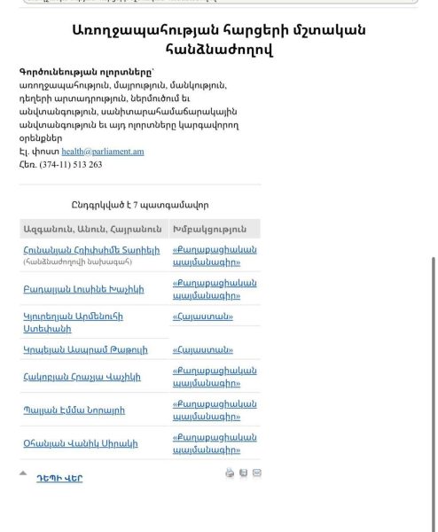 ArmLur.am-ը, հետևողականորեն ուսումնասիրելով Ազգային ժողովի կայքը, նկատել է, որ մինչ այժմ ԱԺ առողջապահության հարցերի մշտական հանձնաժողովի նախագահը դեռ Հռիփսիմե Հունանյանն է։
