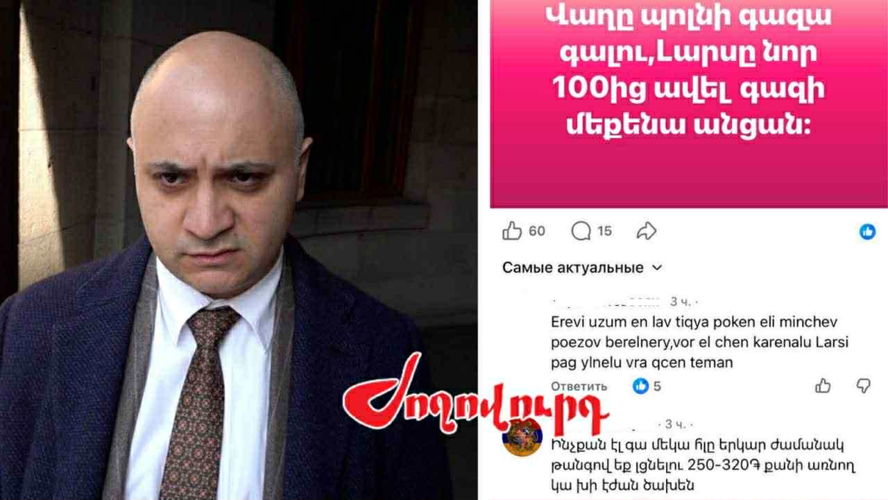 «Ինչքան էլ գա, մեկա հլը երկար ժամանակ թանկով են լցնելու՝ 250-320 դրամ, քանի դեռ կա, խի էժան ծախեն», «Երևի ուզում են լավ թիքա պոկեն էլի, մինչև գնացքով բերողները, էլ չեն կարողանալու Լարսի փակ լինելու վրա քցեն»։