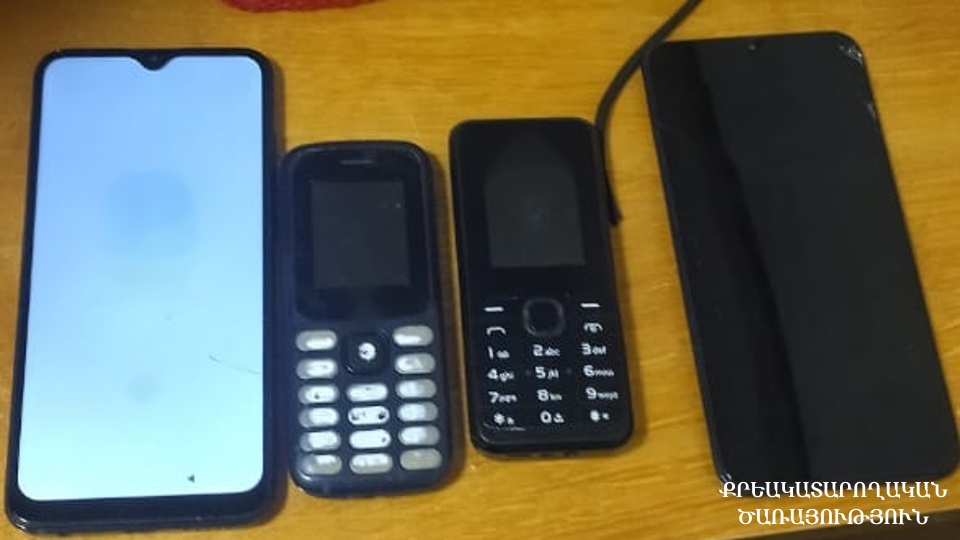 Ահազանգից անմիջապես հետո հիմնարկի ծառայողների կողմից կատարվել է տեղանքի զննություն և հայտնաբերվել է ներնետված սև, պոլիէթիլենային տոպրակ, որի մեջ առկա են եղել սպունգով ամրացված 4 բջջային հեռախոս և լիցքավորման լար։