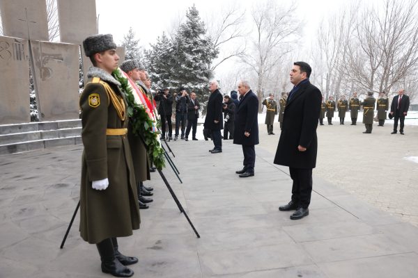 ՖՈՏՈ․ Նիկոլ Փաշինյանը, Ալեն Սիմոնյանը, Վահագն Խաչատուրյանը այցելել են Եռաբլուր Հուն 27,2026 10:10 ՀԵՏԵՎԵՔ ՄԵԶ Telegram-ՈՒՄ ՀՀ Ազգային ժողովի նախագահ Ալեն Սիմոնյանը, ՀՀ վարչապետ Նիկոլ Փաշինյանը, Հանրապետության նախագահ Վահագն Խաչատուրյանը եւ բարձրաստիճան այլ պաշտոնյաներ այցելել են Եռաբլուր եւ հարգանքի տուրք մատուցել հայրենիքի պաշտպանության համար զոհվածների հիշատակին:
