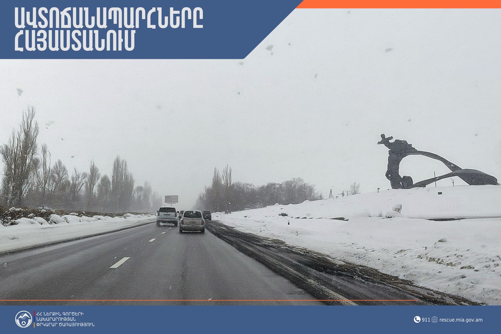 «Վարորդներին հորդորում ենք երթևեկել բացառապես ձմեռային անվադողերով»,- նշվում է ՀՀ ՆԳՆ ՓԾ հաղորդագրության մեջ։