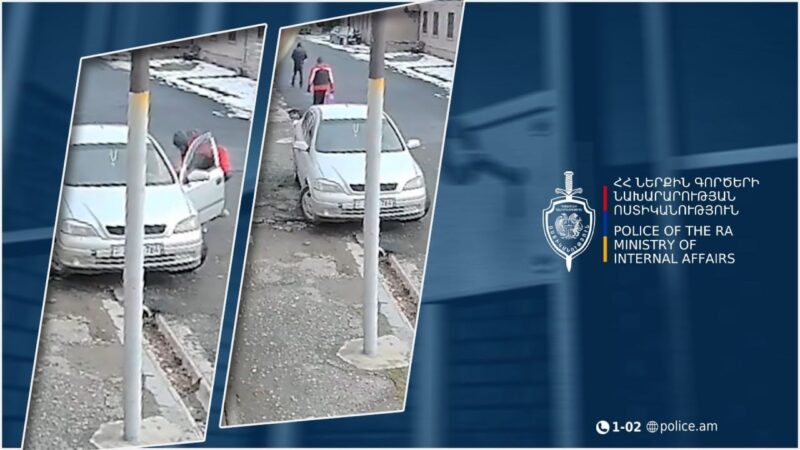 Հունվարի 14-ին՝ ժամը 13․38-ին, Համայնային ոստիկանության Վաղարշապատի բաժին ստացվեց ահազանգ գողության վերաբերյալ։ Էջմիածնի Պուշկինի փողոցում կայանված «Օպել» մակնիշի մեքենայի սրահից գողացել էին դրամապանակ։