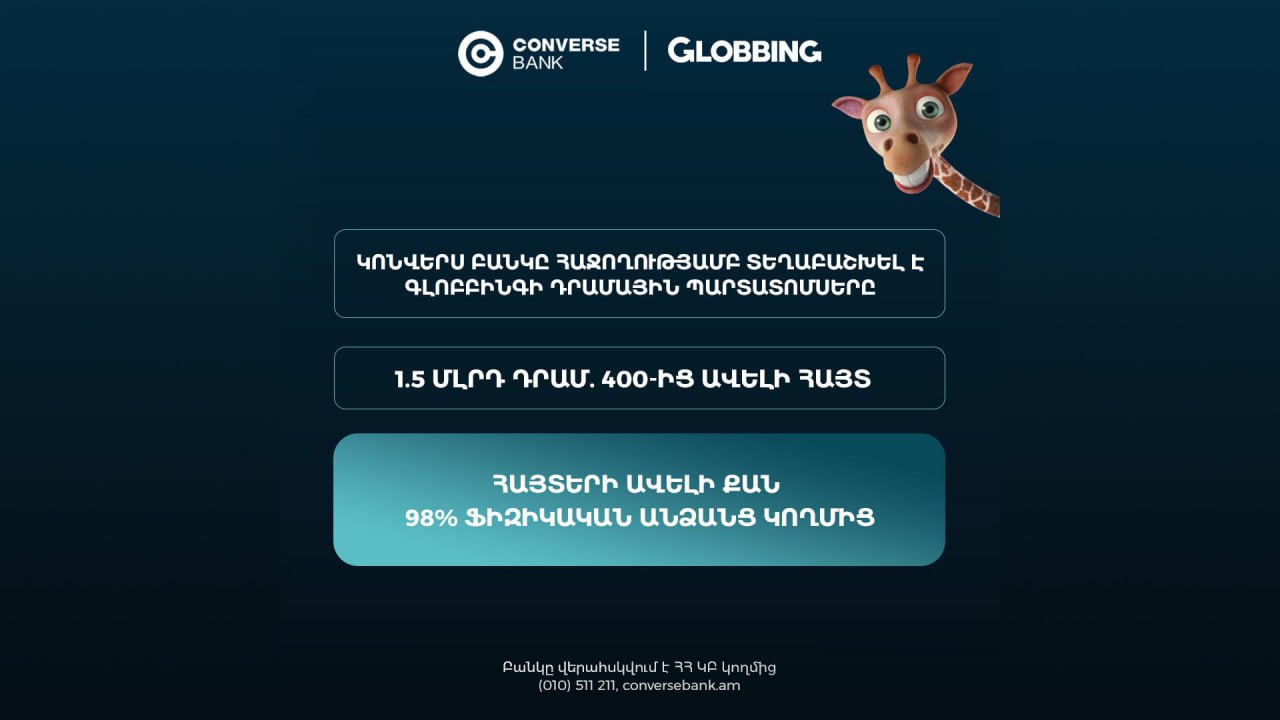 Կոնվերս Բանկը նախատեսված ժամկետից շուտ ավարտել է Գլոբբինգի՝ ՀՀ դրամով պարտատոմսերի տեղաբաշխումը։ Տեղաբաշխման ընդհանուր ծավալը կազմել է 1,5 մլրդ ՀՀ դրամ, արժեկտրոնային եկամտաբերությունը՝ 12%, մարման ժամկետը՝ 36 ամիս։