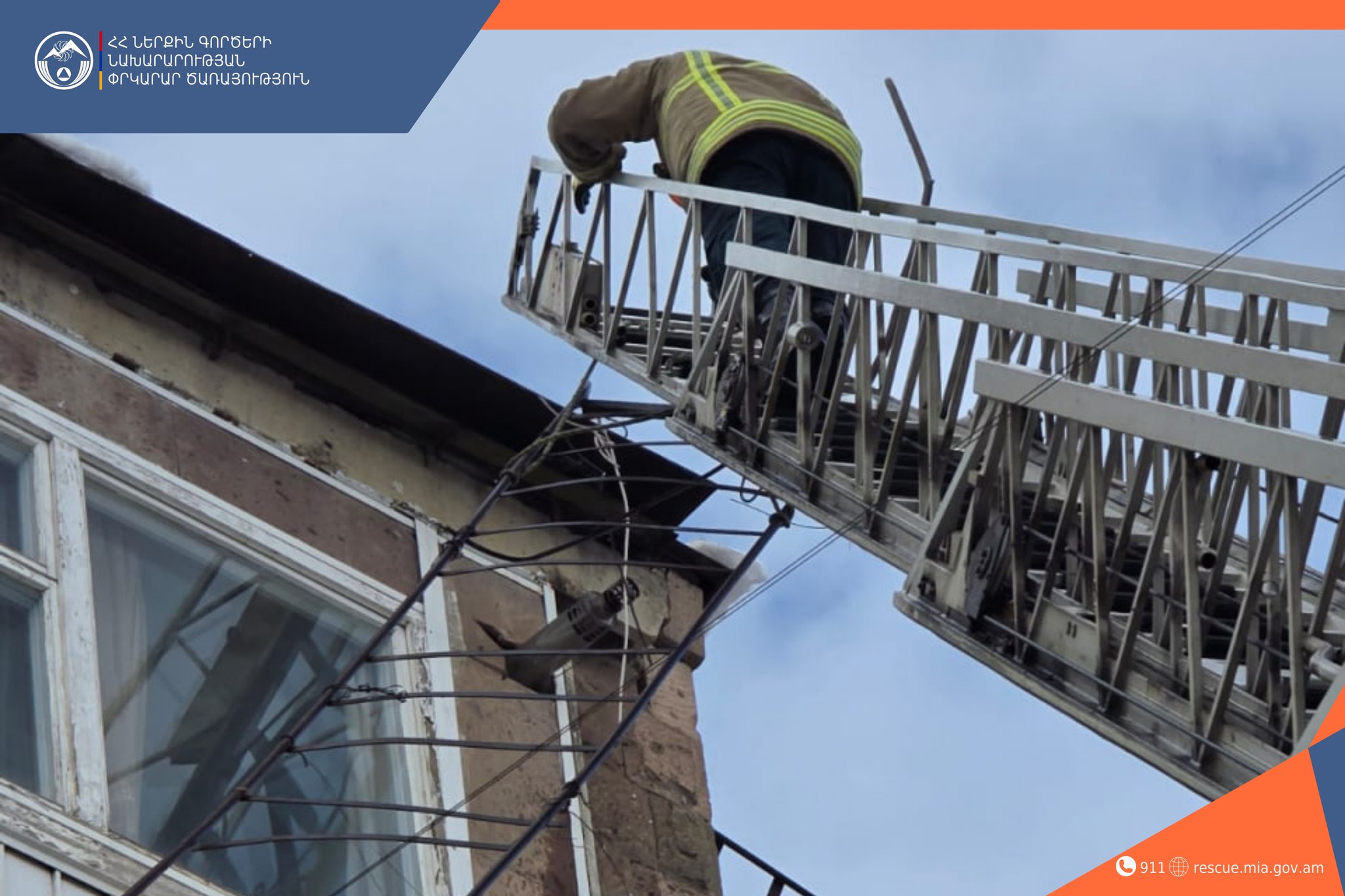 Փետրվարի 3-ին, ժամը 10։24-ից Ճգնաժամային կառավարման ազգային և Կոտայքի մարզային փրկարարական վարչության ճգնաժամային կառավարման կենտրոններ ահազանգեր են ստացվել, որ Հրազդան քաղաքի Միկրոշրջան թաղամասի մի շարք հասցեներում շենքերի տանիքներից երկաթե ճաղավանդակները թուլացել և կախվել են։
