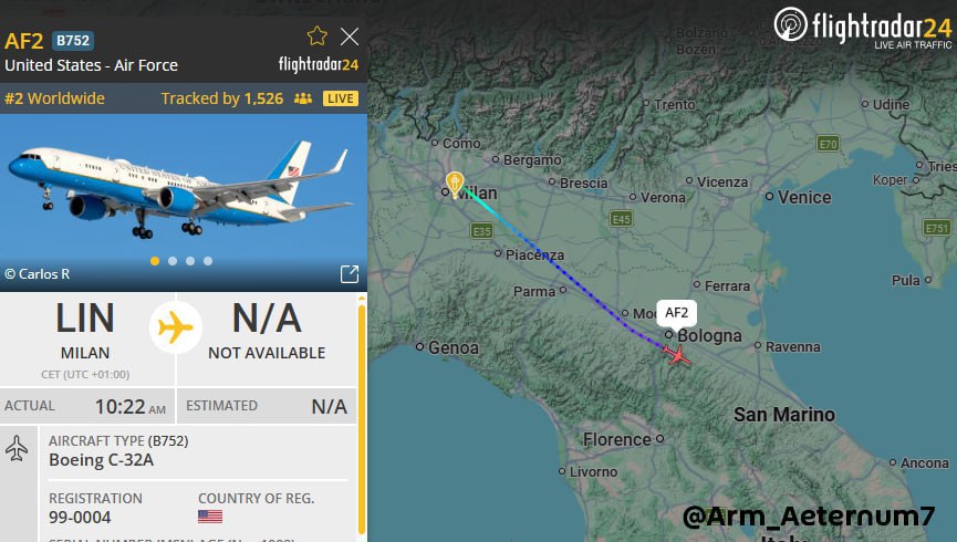 Վենսը գալիս է Երևան. ԱՄՆ փոխնախագահի ինքնաթիռն արդեն մեկնել է Միլանից՝ ըստ Flightradar-ի տվյալների: