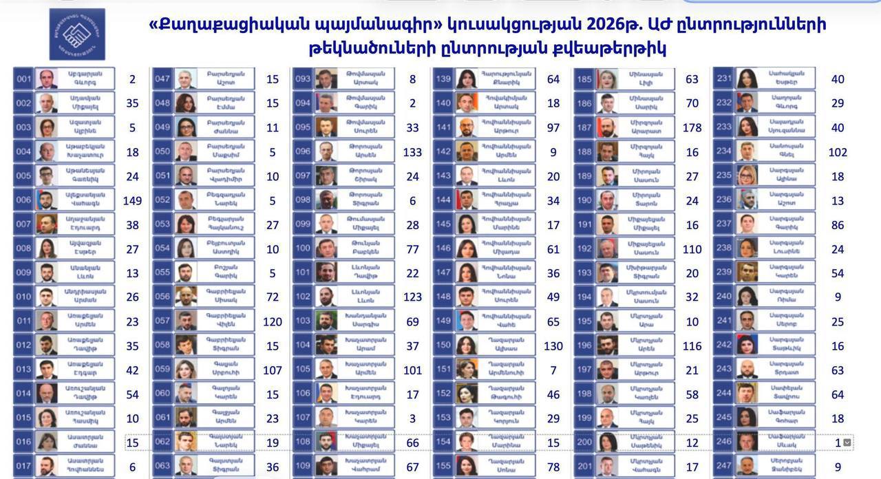 Այս անգամ որոշվելու է նախապես ձևավորված 50-հոգանոց ցուցակի հերթականությունը։ Այլ կերպ ասած՝ թեկնածուները ոչ միայն պետք է լինեն ցուցակում, այլև պայքարեն իրենց տեղն այդ ցուցակում հնարավորինս բարձր ամրագրելու համար։