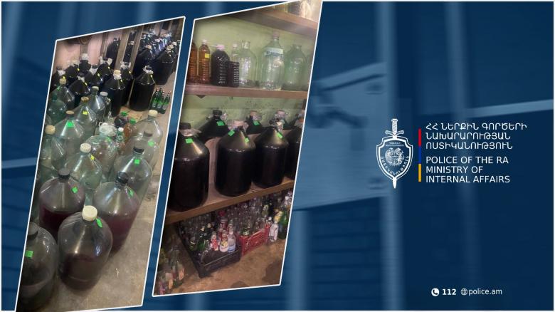 Ապօրինի ձեռնարկատիրության փաստով նախաձեռնված քրեական վարույթի շրջանակում կատարված զննությամբ 67-ամյա տղամարդու՝ Անդրանիկի փողոցում գտնվող տան նկուղում հայտնաբերվել են տարբեր տարողությամբ տարաների մեջ լցված 1680 լիտր գինի և 411 լիտր օղի: