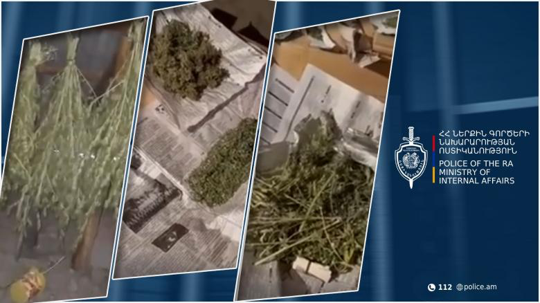 Նախաձեռնված քրեական վարույթի շրջանակում կատարված զննությամբ 61-ամյա տղամարդու տան տանիքում հայտնաբերվել է 3կգ 550 գրամ կանեփանման չորացված զանգված, իսկ նկուղում՝ թմրամիջոցի նմանվող զանգվածով 11 փաթեթ՝ ընդհանուր 120,8 գրամ քաշով: