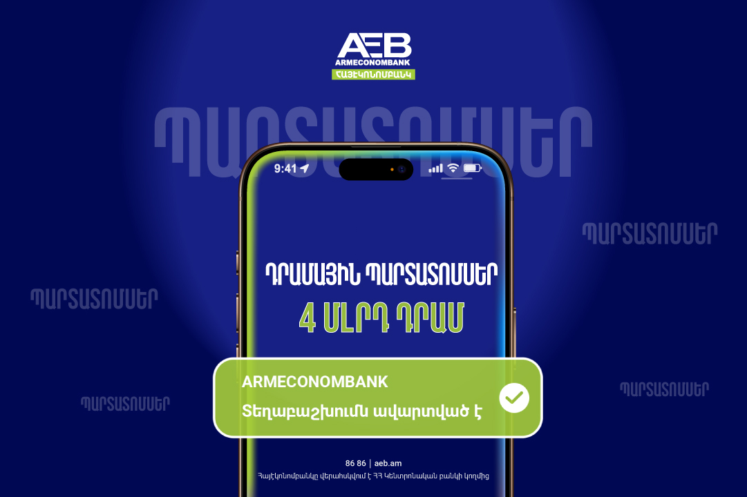 Հայէկոնոմբանկը մեկ օրում ավարտել է 23.02.2026թ. թողարկված 4 մլրդ դրամ ընդհանուր ծավալով դրամային պարտատոմսերի տեղաբաշխման գործընթացը: