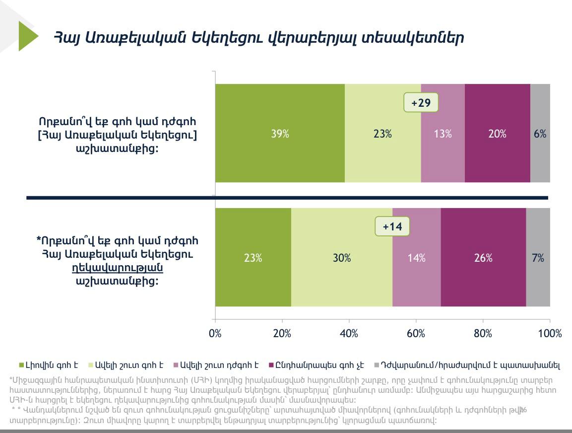 Հարցման արդյունքները ցույց են տալիս, որ թեև հասարակության մեծ մասը դրական է գնահատում Հայ առաքելական եկեղեցիի գործունեությունը ։