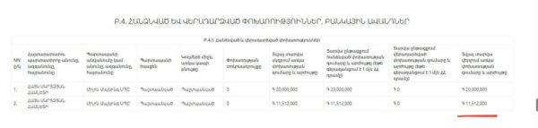 • Մայր գումար՝ 19,642,000 դրամ (հիփոթեքի առարկա՝ բազմաբնակարան շենքի բնակարան)