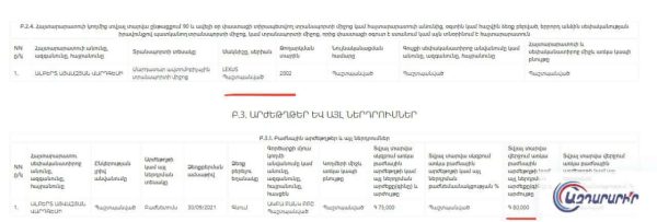 Ավտոմեքենա չի հայտարարագրել, բայց օգտագործել է Lexus