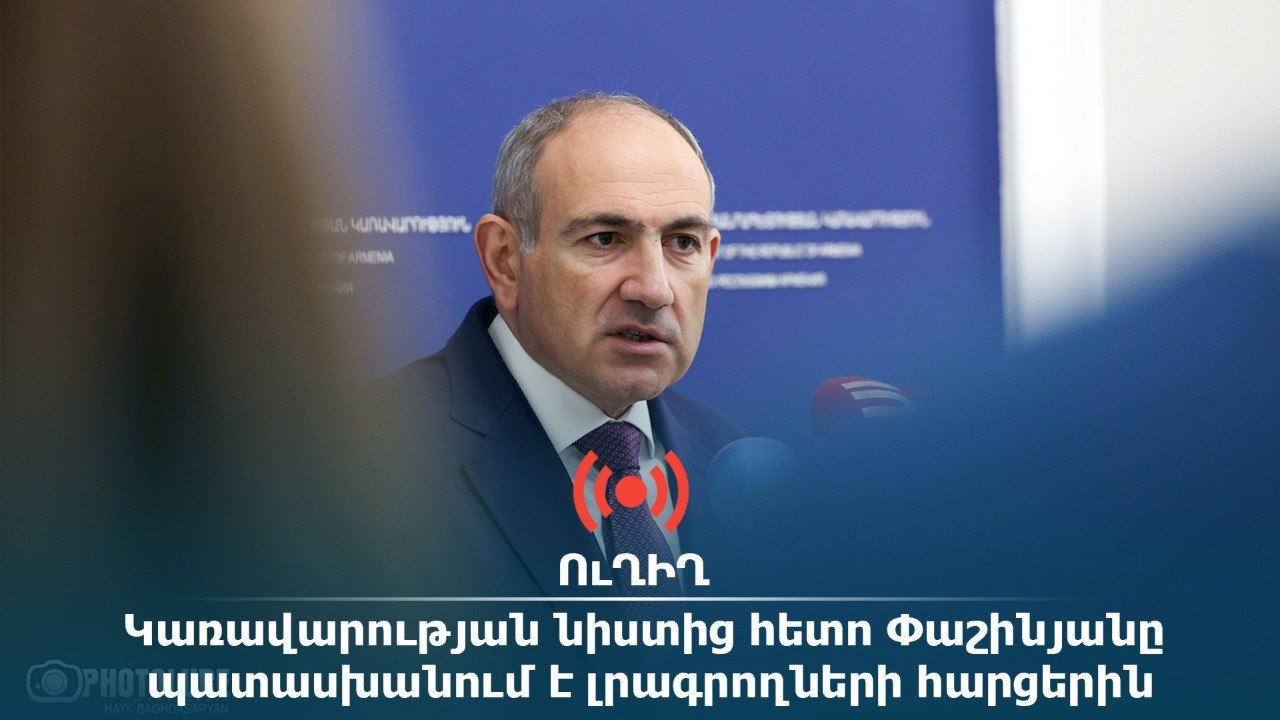 ՈւՂԻՂ․ Կառավարության նիստից հետո Փաշինյանը պատասխանում է լրագրողների հարցերին Մար 26,2026 12:35 ՀԵՏԵՎԵՔ ՄԵԶ Telegram-ՈՒՄ Կառավարության նիստից հետո Փաշինյանը պատասխանում է լրագրողների հարցերին։ Մանրամասները՝ տեսանյութում․