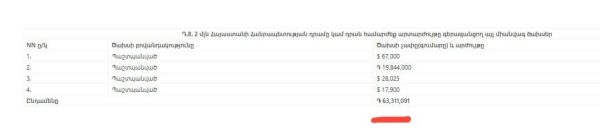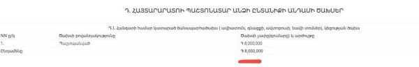 Ծախսերի մասով Արման Ավետիսյանը նշել է 2,500,000 դրամ՝ հանգստի ճանապարհածախսի և կեցության համար, 6,182,681 դրամ՝ վարկի մարման վճարումների համար և 7,480,000 դրամ՝ մեկանգամյա ծախսերի տեսքով։