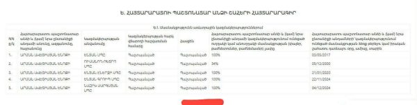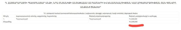 Այսպիսով, տարվա վերջի դրությամբ Արման Ավետիսյանի անունով առկա է եղել 5 միավոր անշարժ գույք՝ բնակարան Երևան Կենտրոնում, երկու հողամաս Գեղարքունիքի մարզի Շողակաթ համայնքում, բնակարան Ռուսաստանում և մեկ այլ բնակարան Երևանում՝ ժառանգությամբ ստացված։