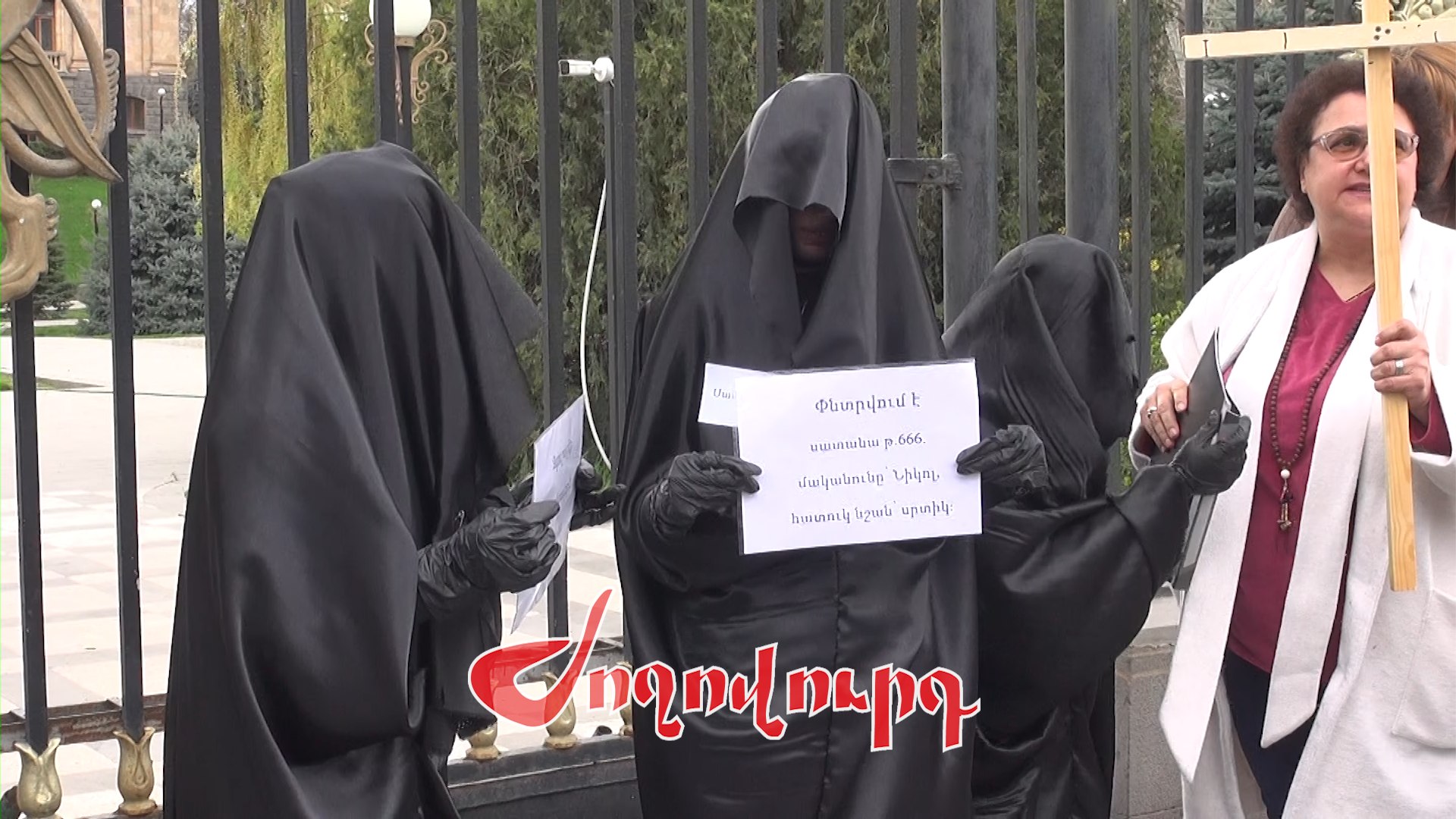 Այսօր ՀՀ ԱԺ-ի դիմաց բողոքի ակցիա է տեղի ունեցել։ Ակցիայի նախաձեռնողները նշում են, որ իրենց ակցիան հոգևոր արժեքների պաշտպանության համար է: