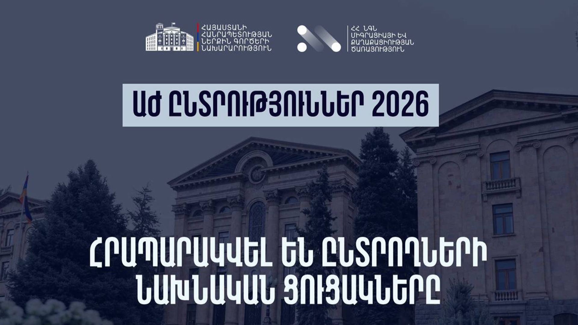 Ներքին գործերի նախարարության elections.mia.gov.am հարթակում արդեն հրապարակված են 2026 թվականի հունիսի 7-ին կայանալիք Ազգային ժողովի հերթական ընտրություններին մասնակցող ընտրողների նախնական ցուցակները՝ որոնման և ներբեռնման հնարավորությամբ։