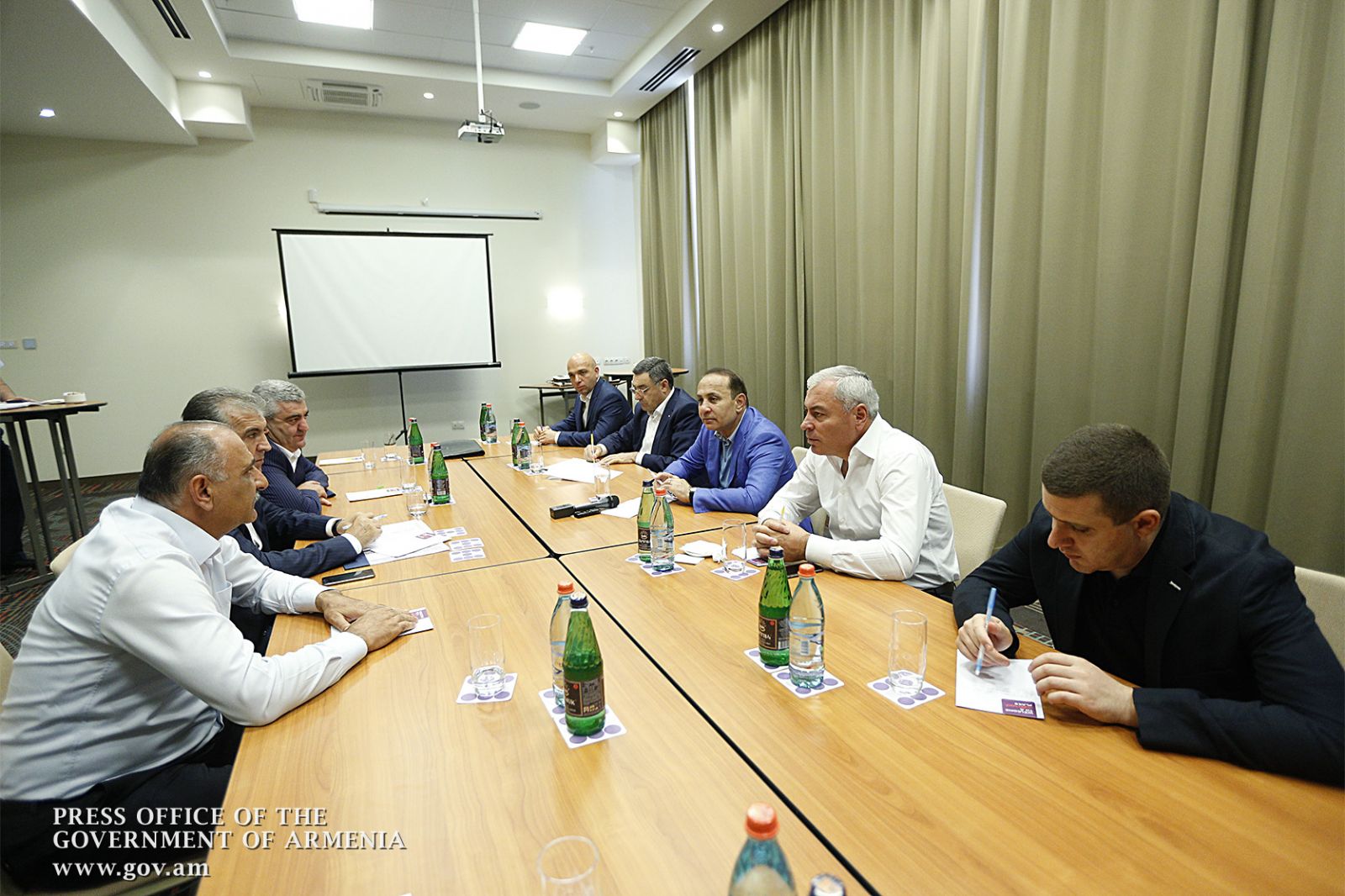 Հովիկ Աբրահամյանը նշել է, որ գործադիրը քննարկում է պետական աջակցության ծրագրերով մթերող ձեռնարկություններին օժանդակելու հարցը, որպեսզի վերջիններս, նախատեսված պահանջարկից բացի, կարողանան մթերել նաև խաղողի լրացուցիչ քանակություն: «Պռոշյանի կոնյակի գործարան» ՍՊԸ-ի ղեկավարությունը նշել է, որ տարեցտարի գործարանի կողմից մթերվող խաղողի ծավալն աճում է, և անցած տարի մթերվել է շուրջ 14000 տոննա խաղող: Ընթացիկ տարում գործարանը պատրաստվում է սեփական ուժերով մթերել 15000 տոննա խաղող, և լրացուցիչ՝ ևս 10000 տոննա խաղող մթերելու համար դիմել է պետական օժանդակություն ստանալու համար: Իր հերթին «Արարատի գինու գործարան» ՍՊԸ-ի ղեկավարությունը նշել է, որ գործարանն ունեցել է դինամիկ աճ խաղողի մթերման առումով, և անցած տարի մթերել է 10700 տոննա խաղող: Այս տարի հաշվի առնելով բերքի առատությունը և որակը՝ գործարանը պատրաստ է պահպանել և նաև գերազանցել անցած տարվա մակարդակը՝ մթերել այնքան տոննա խաղող, որքան գյուղացին կներկայացնի գործարան: