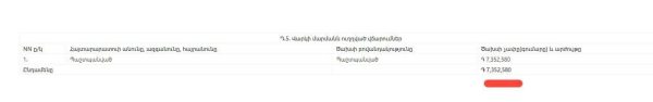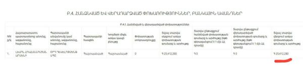 Նրա կողմից «ՕՐԴ ԴԵՎԵԼՈՓՄԵՆԹ» ՍՊԸ-ին տրված և վերադարձված փոխառությունը կազմում է 25,412,280 դրամ։