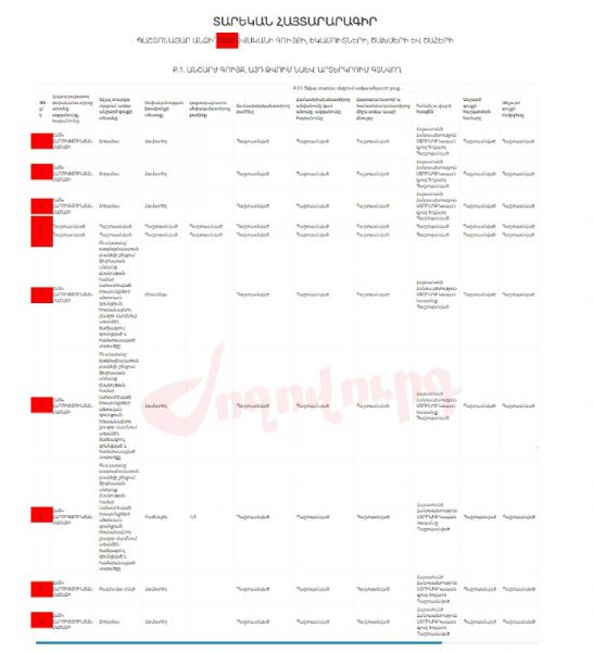 Ընդհանուր առմամբ, հայտարարագիրը ցույց է տալիս, որ պաշտոնյայի հիմնական ակտիվները ձևավորվում են անշարժ գույքից և աշխատավարձային եկամուտներից, իսկ պարտավորությունները հիմնականում կապված են վարկերի մարման հետ»։